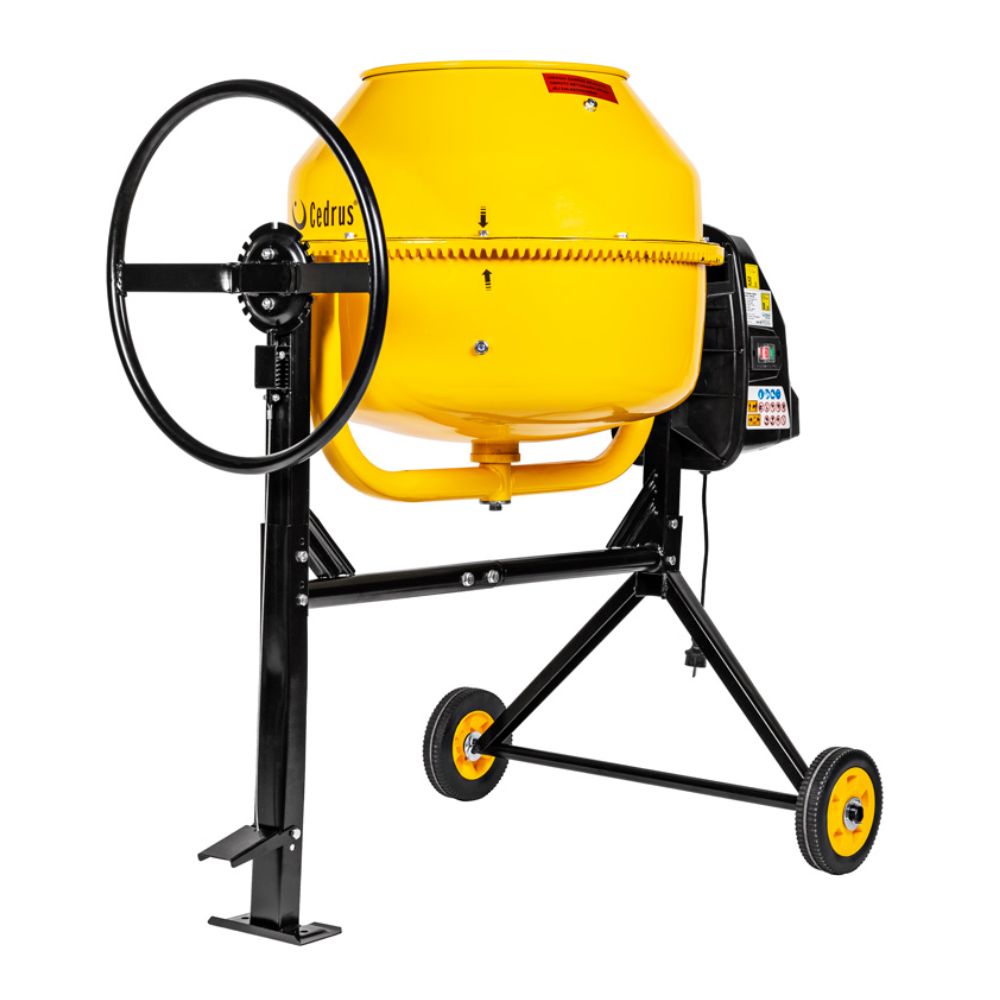 Betoniarka Cedrus BT160 przeznaczona jest do mieszania wszelkiego rodzaju zapraw. Betoniarkę napędza jednofazowy silnik o mocy 650W. Przeniesienie napędu z silnika na bęben odbywa się za pomocą paska klinowego. Wieniec bębna oraz zębatka napędzająca wykonana jest z żeliwa. Całkowita pojemność bębna wynosi 160l, pojemność robocza jest niższa i wynosi około 145l. Przechył bębna odbywa się w łatwy sposób za pomocą koła z tarczą regulacyjną. Betoniarka BT160 tak jak wszystkie nasze betoniarki opiera się na stalowej ramie wyposażonej w koła ułatwiające transport maszyny. Wszytkie nasze maszyny spełniją normy CE.