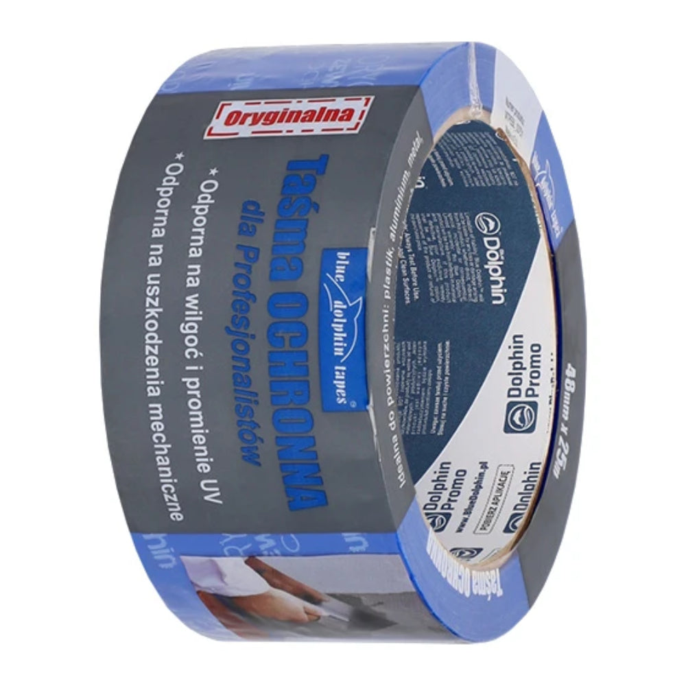 Taśma ochronna zewnętrzna Blue Dolphin przeznaczona jest do prac malarskich i ogólnobudowlanych na zewnątrz. Zastosowanie specjalnego nośnika wraz z substancją klejąca pozwala na łatwe i czyste odklejanie taśmy bez uszkodzeń powierzchni i śladów kleju. Charakteryzuje się odpornością na promienie UV, wilgoć, różnice temperatur oraz uszkodzenia mechaniczne. Produkt ten dedykowany jest do gładkich powierzchni takich jak: szkło, plastik, aluminium, metal, winyl czy drewno.