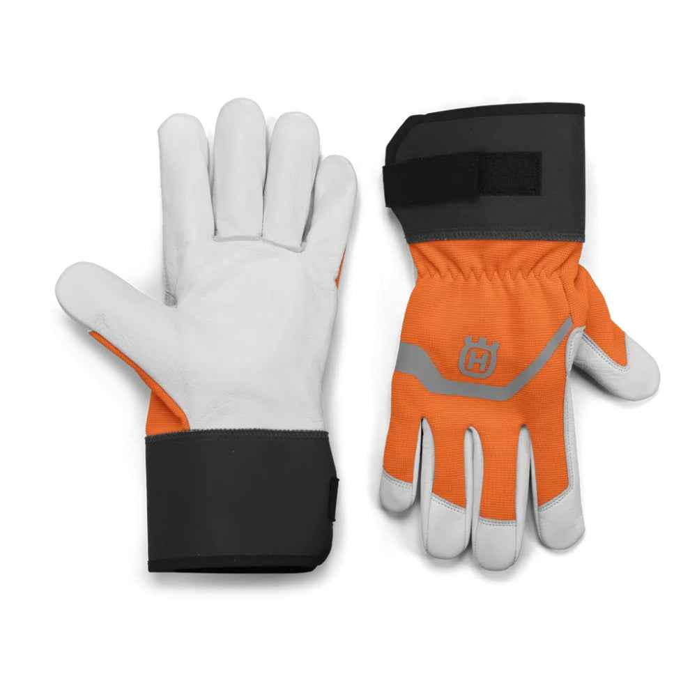 Wytrzymałe rękawice w uniwersalnym rozmiarze. Spód rękawicy z garbowanej skóry koziej, z wierzchu tkanina spandex. Mankiety powleczone gumą, z bawełnianym ściągaczem.
