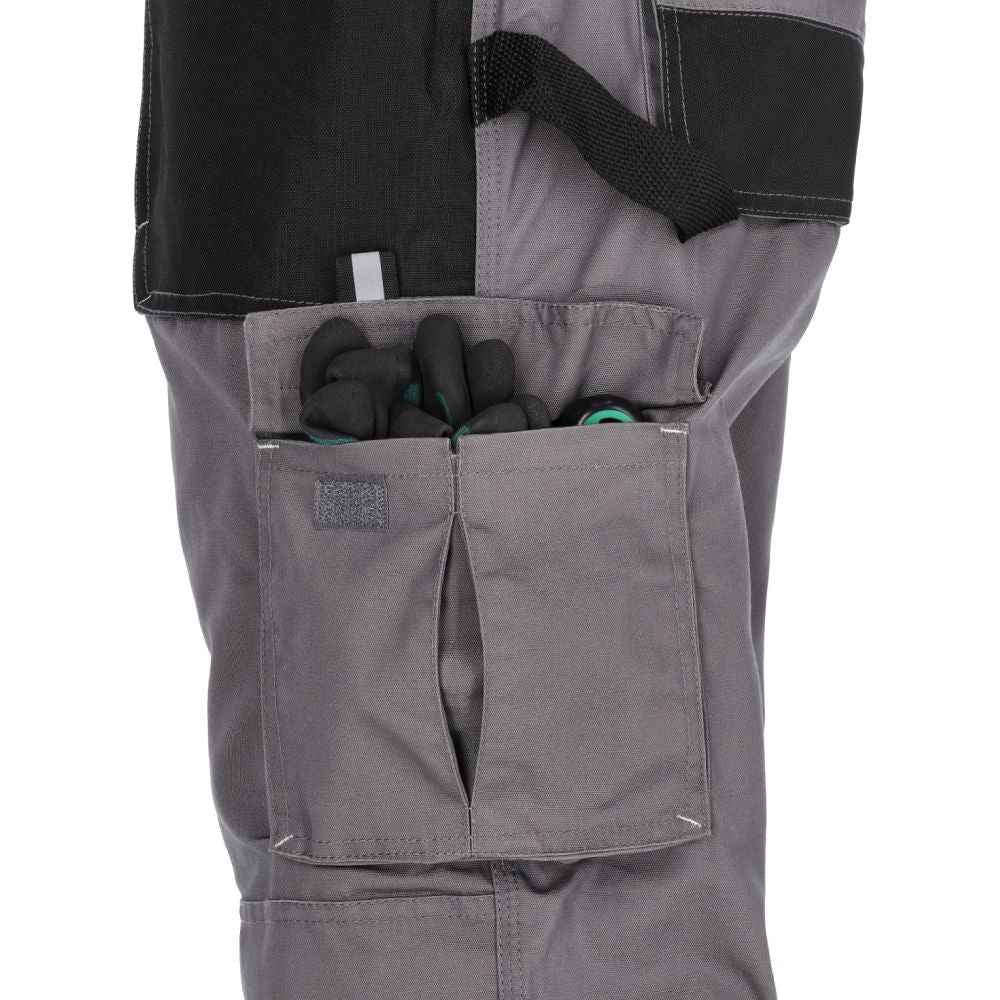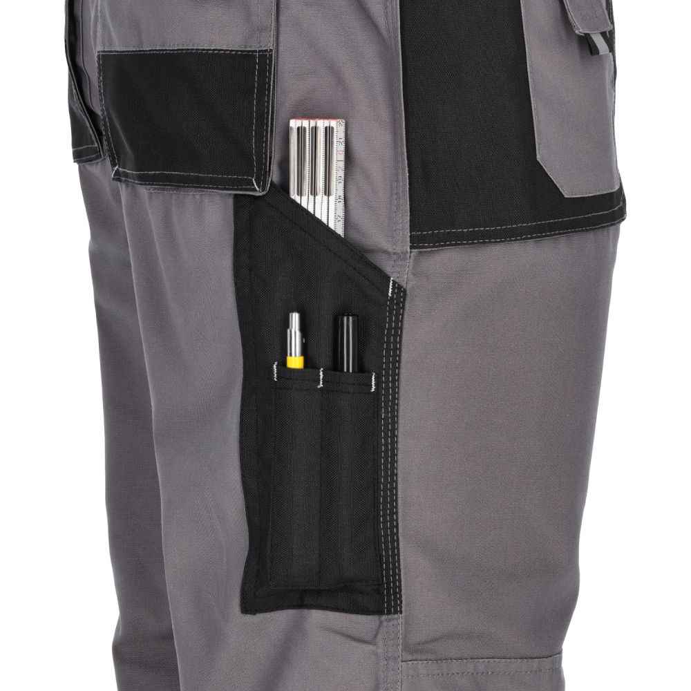 Spodnie mają kilka funkcjonalnych kieszeni na osobiste przedmioty i podręczne akcesoria. Prócz kieszeni wzmocnionych materiałem OXFORD, Cztery z nich znajdują się w obrębie pasa z przodu i z tyłu. Dodatkowe dwie mają uchwyt na młotek, kieszeń na miarkę i kieszonkę na telefon.