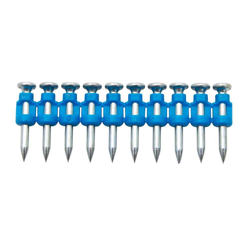 Gwoździe do betonu o średnicy 2.6 mm i długości 25 mm. Pasują do gwoździarek marki TJEP oraz SPIT.